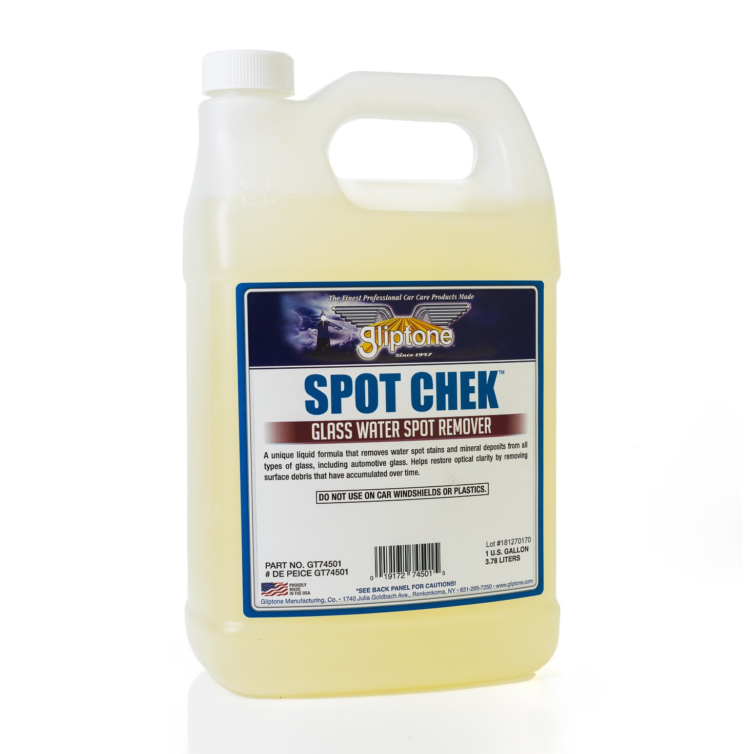 Spot Chek est notre propre formule liquide unique qui élimine les taches d’eau sur tous les types de verre, y compris le verre automobile.